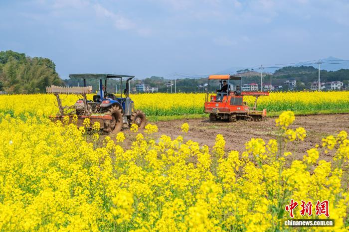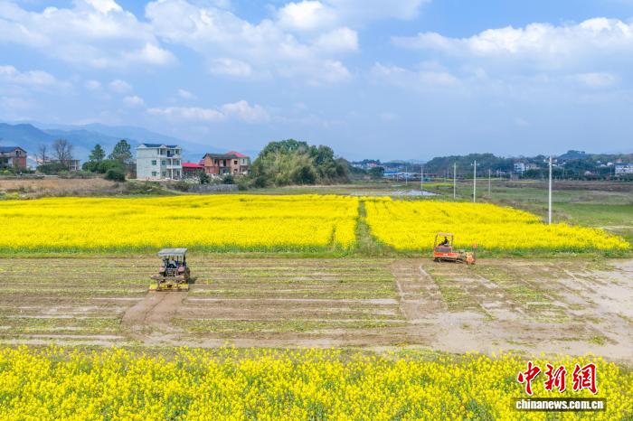 3月12日,湖北永州市东安县鹿马桥镇石坝冲村,农人驾驭农机翻耕农田,为早稻插播干筹备。连日去,跟着气呼呼暖归降,本地农人抢抓农时,有序启铺秋耕备耕等庄稼举动,田间天头1片冗忙情景。蔡小仄 摄