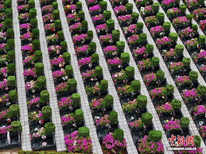 市平易近正在绿意盎然的境况中思念祖宗、依靠悲哀。(无人机像片)中新社记者 王东亮 摄